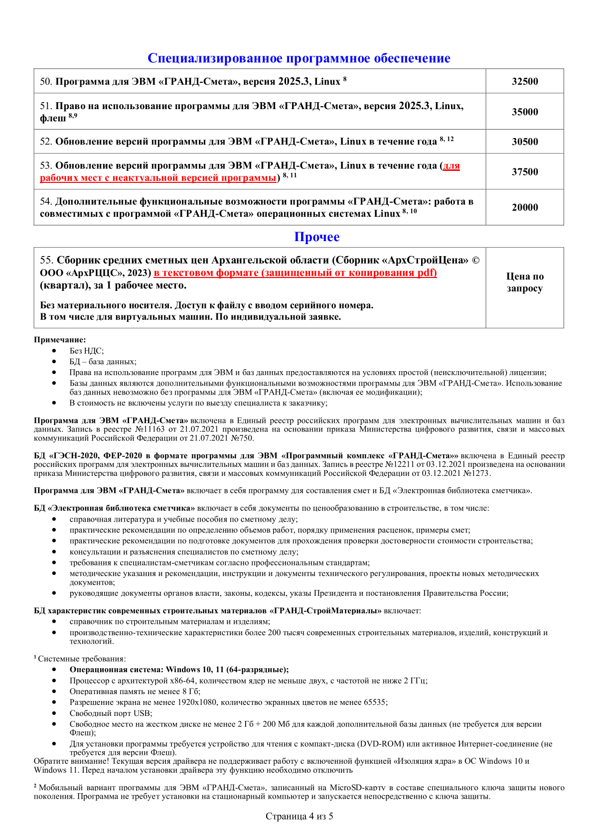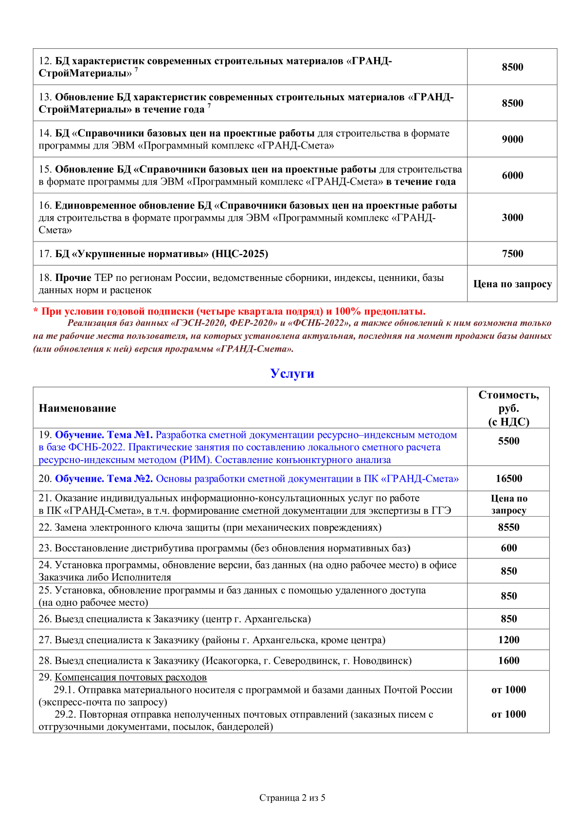 Прайс-лист и заявки на приобретение/сопровождение ПК «ГРАНД-Смета» (Запись в Реестре Российского ПО №11163)